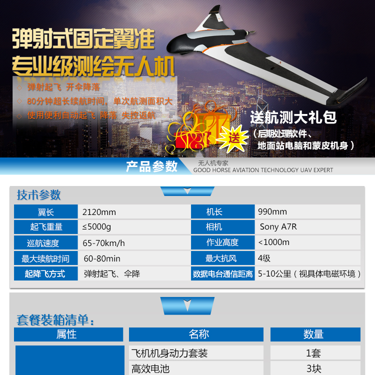 靓马弹射式固定翼准专业级测绘 航测无人机全套解决方案