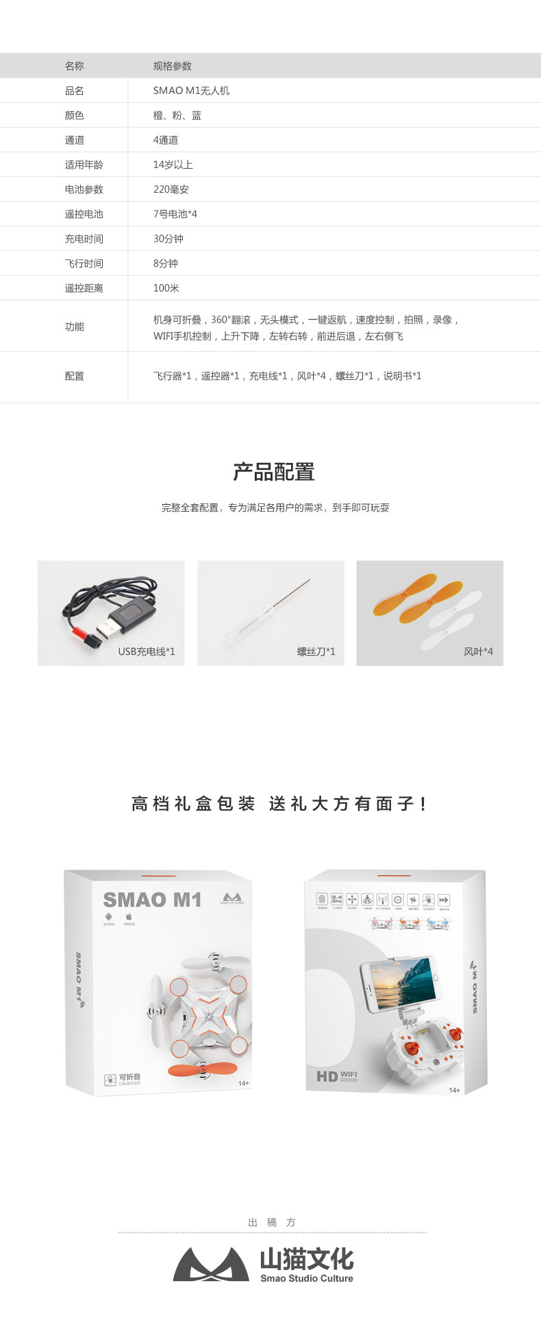 SMAO/RC m1迷你四轴wifi折叠四轴飞行器遥控飞机模型玩具无人机