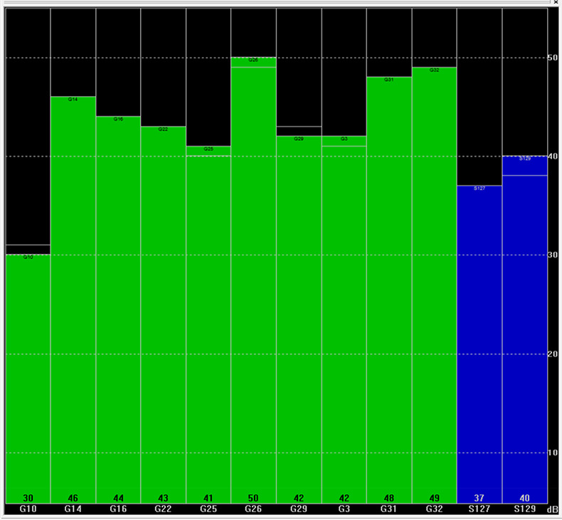 上图天线在开阔天空处的实际搜星情况,天线做过50欧姆阻抗设计,经过天线匹配。