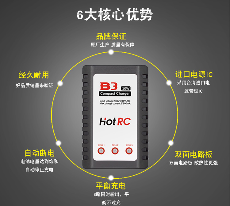 B3充电器 航模锂电池7.4V/11.1V/2S/3S平衡充 跨境高品质款