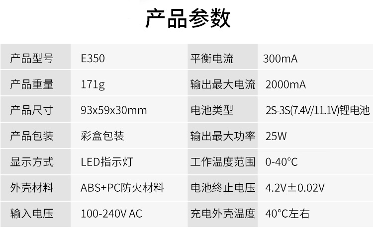 E350 航模锂电池2S 3S 7.4V 11.1V 快速平衡充电器 工厂销售